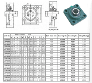 UCF Yataklı Rulman Serisi Tüm ölçüler mevcuttur. UCF 201-UCF 218